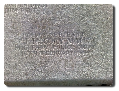 | Notes: | MMP. From Forest Hill. Later L/Cpl A.Sgt. Died, (Pneumonia). He was born in Wandsworth 1884, enlisted in New Cross and resided at 84 Malham Road, Forest Hill. Formerly A/Sgt 6 Dragoon Guards, No. 5396. Awarded the 1914 Star, Victory and War Medals. First served abroad (1) France, 14/8/14. 1914 Star on a separate medal card with MMP No. 11842 and DG No.5363. Next of Kin, Mrs P Cory (Widow), 84 Malham Road, Forest Hill, SE23. Info from Army Register of Soldiers' Effects, 1901-1929. Shown as died whilst on Furlough in Forest Hill, London. 18/10/1919 his widow Martha received £10-01-08 and on 27/11/1919 a further £18-8-04 including £29 war gratuity. A 2nd entry shows 18/10/1919 widow Martha received £4-00-06. Info from Pension Index Card:- Cory, John Henry, No.P/4609, MMP, Sgt, 15/2/1919 died from influenza whilst on active service. Widow Martha Emily Cory, 24 Malham Road, Forest Hill, London SE. They had 2 x children Emily Florence born 19/2/1914 and Lottie Patricia born 5/7/1919. Widow received £6 grant on 26/4/1919 and 25/11d per week 18/8/1919 pension. John Henry Cory. Extract from the Brockley News, new Cross and Hatcham Review 26 July 1919. FRENCH HONOURS FOR LOCAL MEN. The French Government has conferred the Medaille d'Honneur upon Lance Corporal (A/Sgt), J. H. Coy (should read Cory), Military Mounted Police, Forest Hill. |