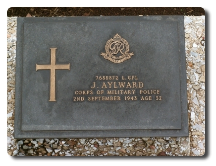 | Notes: | CMP. Enlisted in to CMPP. He was born in Yorkshire and resided in Leeds. Captured at Singapore 15/2/1942. Died from Cholera 2/9/1943 at Kami Sonkrai. Thailand. Widow: Mr Aylward, 133 York Road, Leeds 9. Information from Japanese POW card index: James Ayleward, Born 16/6/11, occupation Labourer, 18 Div Pro Coy, born Normanton, Leeds, Yorkshire. Casualty List 793/19, Malaya, Missing, 15/2/1942. Casualty List 1099/4, previously reported missing now reported as POW, 793, 5/2/1942. Casualty List 1930/14, POW, previously reported POW now reported died, 2/9/1943, previous List 1099 Malaya. 5/10/49 He was awarded the 1939 - 1945 Star, Pacific Star, War Medal. Address:- 133 York Road, Leeds 10, Yorks. Named on Roster of British POW's captured by Japanese Forces: 1596, Ayleward, James, L/Cpl, 7688872, captured 15/2/1942, liberated 2/9/1943, camp Malaya, Deceased. Named on Malaya POW Camp List, 1/11/1944: Aylward, James, Army, L/Cpl, new POW No. IV1487, old POW No. i/1131, 7688872. Named on Kami Sonkri Camp No. 1 nominal roll of British prisoners: 7688872, L/Cpl, Aylward, J, CMP, Died 2/9/1943. Named on "F" Force Nominal Roll: 7688872, L/Cpl Aylward, J, CMP, 18 Div, died 2/9/1943 also named on "F" Force Nominal Roll, Train 7 and nominal roll of overland party "F", 24/4/1943. Death Certificate, Ayleward, James, L/Cpl, 7688872, died from Cholera, 2/9/1943, Buried. Jack Aylward. |