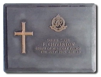 | Notes: | CMP. POW. Singapore Fortress Pro Coy. Enlisted in the Hampshire Regiment transferred to Royal Artillery, 23/9/40 Transferred to CMP. 4/7/45 Died. He was born in Surrey and resided in Hampshire. No inscription on Grave Panel. Captured 15/2/42 Singapore. Shown as being in Borneo in Cutts paper. Info from Japanese POW index card: Frederick Chiverton, Born 26/10/1905 at The Yews, Bonleuge, Nr Farnham, Surrey, address: Brother Edgar Chiverton, 2 High View, Oakaneer, Nr Bordon, Hampshire. Show on register date of death 4/7/1945 at Kuching. Named on British POW's held in Japan or Japanese held territory: 9199, Chiverton, Frederick, L/Cpl, 5491811, Army, captured 15/2/1942, died 4/7/1945, Camp BO, Borneo Casualty List 766/12, Malaya, Missing, 15/2/1942. Casualty List 1126/21, Malaya previously reported missing now reported POW, previous List 766, 15/2/1942. Casualty List 1597/29 Malaya, reported missing now POW. Casualty List 1942/10, previously reported POW now reported died, previous List 1126 (corrected by 1597) Malaya. Date of death 4/7/45. Medal card not found. Frederick Chiverton. |