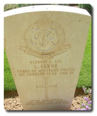 | Notes: | CMP. Enlisted in the Cheshire Regiment, transferred to CMP. He was born in Norfolk and resided in Wolverhampton. 113 Pro Coy War Diary WO 169/13256, 3/1/43 received information from Lt Richards that No. 4126081 L/Cpl Clyne C was killed by enemy mine at Sirte on 1/1/43. Casualty List 1047/3, Libya, killed in action, 1/1/1943. Medal card not found. Inscription on gravestone: Loved, remembered and longed for always, Loving wife and baby Ann. Cecil Clyne. |