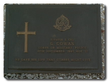 | Notes: | CMP. POW. 18 Div Pro Coy. Enlisted in the Kings Own Scottish Borderer's. 12/1/41 Transferred to CMP. 19/9/43 Died. He was born and resided in Roxburghshire. Captured Singapore 15/2/1942. Died from Tropical Ulcers 19/9/1942 Tambya, Burma. Home address: 11 Earl Street, Hawick, Roxburghshire. Info from Japanese POW index card: George Cowan. Born 3/6/1916 at Hawick, Scotland, occupation Builder, home address: Alice Cowan, 11 Earl Street, Hawick , Scotland, father William, mother Esther. Named on British POW's held in Japan or Japanese occupied territory: 11309, Cowan, George, L/Cpl, 3194338, Army, captured 15/2/1942, Died 19/2/1943, camp MA, Malaya, (Thailand). deceased. he is named on "F" Force Working Party Roll, Thailand: 3194338, L/Cpl, Cowan G, CMP 18 Div Pro Coy, died 19/9/1943. Casualty List 793/19, Malaya, Missing, 15/2/1942. Casualty List 1126/21, Malaya previously reported missing now reported POW, previous List 793, 15/2/1942. Casualty List 1930/14, POW, previously reported POW now reported died, date died 19/9/1943, previous List 1126, Malaya. 7/9/49 He was awarded the 1939-1945 Star, Pacific Star, War Medal. Address:- Mrs A H Cowan, 11 Earl Street, Hawick, Roxburgshire, Scotland. George Cowan. |