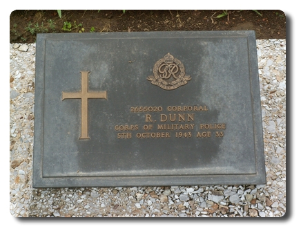 | Notes: | CMP. POW. 18 Div Pro Coy. 13/1/1931 he enlisted in the Coldstream Guards for 3/9 years, born Burnley, occupation Labourer, 23/2/1940 transferred to CMP. 5/10/43 Died. Captured Singapore 15/2/1942. Not listed in Army Roll of Honour. Died from diarrhoea & Beri Beri, 10.15hrs 5/10/1943 at Thanbaya Hospital, Burma. He is named on nominal roll for overland party "F", 24/4/1943. Named on cemetery list: No. 81, 2655020 Dunn R, Cpl, 18 Div Pro Coy, died 5/10/1943 from Beri Beri, camp II, 2nd row, Thambaya Hospital Burma. Info from Japanese POW index card: Richard Dunn. Born 6/7/1910 at Fernley, Lancashire, occupation Turner, home address:- 40 Grasmere Street, Burnley, Lancashire, father John Edward, mother Louisa. He is listed on British POW's held in Japan or Japanese Occupied Territory: 14735, Dunn, Richard, Cpl, 2655020, Army, captured 15/2/1942, Died 5/10/1943, camp MA, Malaya, Deceased. He is named on Malaya POW Camp roll: Dunn, Richard, Army, Cpl, new POW No. 3925, old POW No.i/2492, 2655020, 5/10/18. Casualty List 793/19, Malaya, Missing, 15/2/1942. Casualty List 1129/15, Malaya, previously reported missing now reported POW, previous List 793, 15/2/1942. Casualty List 1924/12, POW, previous reported POW now reported Died, 5/10/1943, previous List 1129, Malaya. 12/4/50 He was awarded the 1939-1945 Star, Pacific Star, War Medal. Address:- Mrs M C Dunn, Grasmere Street, Burnley, Lancs. Richard Dunn. |