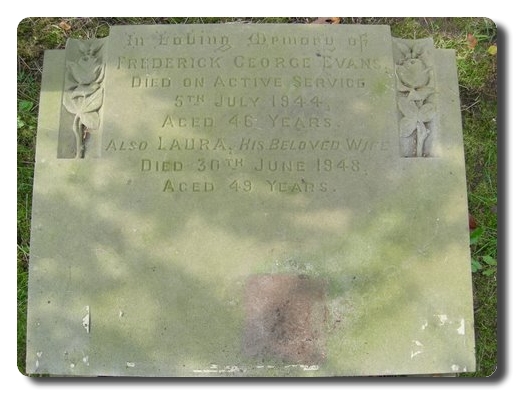 | Notes: | CMP. Enlisted in the Royal Northumberland Fusiliers, transferred to CMP. 17/6/98 born. 5/7/44 Died. He was born in Newcastle upon Tyne and resided in York. Holder of the Long Service & Good Conduct Medal George V. Casualty List, 1508/45, Died of Wounds, Home, 5/7/1944. Inscription on family gravestone: Died on Active Service. Medal card not found. Frederick George Evans. |