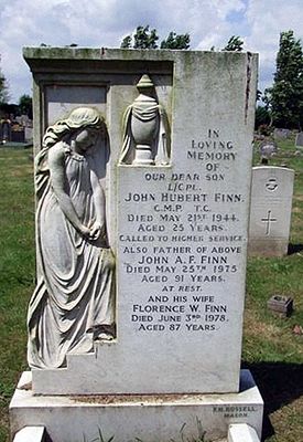 | Notes: | CMP. Enlisted in the The Buffs East Kent Regiment. 1/6/41 Transferred to CMP. Casualty List 1471/22, Home, Wounded, 21/5/1944, result of accident CL 1497/37. Casualty List 1497/37, Home, Died, should read Died result of accident, 21/5/1944. 4/9/49 He was awarded the 1939-1945 Star, Defence Medal, War Medal. Address:- 84 Albermarle Road, Willesborough, Ashford, Kent. He was born and resided in Kent. Inscription on private memorial: In loving memory of our dear son L/Cpl John Hubert Finn, CMP. TC, died May 21st 1944, aged 25 years. Called to higher service. John Hubert Finn. |