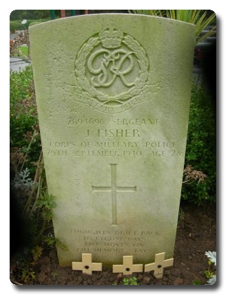 | Notes: | CMP. 13/2/1934 enlisted in the Scots Guards, 22/1/1940 transferred to CMP. He was born in Lanarkshire and resided in Glasgow. Casualty List 328, Home, accidentally killed, 29/9/1940. 209/49 He was awarded the 1939-1945 Star, Defence Medal, War Medal. Address:- 40 Admaston Road, Plumstead Common, London S E 18. Inscription on gravestone: Thoughts drift back to bygone days, life moves on but memory stays. Died in a road accident. James Fisher. |