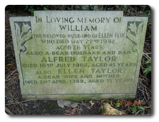 | Notes: | CMP. 8/8/40 enlisted in the Pioneer Corps, 1/2/41 transferred to CMP. born 27/4/15, 22/5/42 Died. He was born and resided in Wigan. Casualty List 841/8, Home, Died, 22/5/1942. 26/7/48 He was awarded the Defence Medal, War Medal. Address:- Not shown. Inscription on private gravestone: In loving memory of William the beloved husband of Ellen Fox, who died May 22 1942, age 26 years. Also a large black urn inscribed: To William from mother, dad and sister. Shown in cemetery records as living at Marland, Mill Land, Wigan and in notes column, Belfast Hospital. William Fox. |
