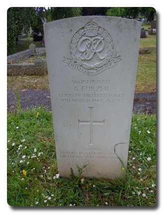 | Notes: | CMP. Died 9/3/44. He was born and resided in Somerset and formerly served in the Devonshire Regiment, transferred to CMP. 4/2/95 born. Casualty List 1413/18, Home, Died, 9/3/44. He served in World War One. Awarded the 1914 Star with clasp (2/271) and rose, Victory and War Medals. First served abroad (1) France, 21/8/1914 awarded as Pte. 1 Somerset Light Infantry. No. 8955. 12/4/50 He was awarded the Defence Medal, War Medal. Address:- 64 Moorland Road, Taunton, Somerset. Inscription on gravestone: Sleeping in Gods beautiful garden, his loving wife and family. Bert Furzer. |