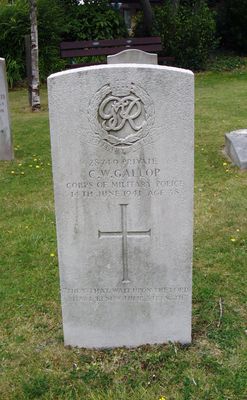 | Notes: | CMP. 6/11/39 enlisted in the Royal Army Service Corps and later Hampshire Regiment. 8/3/41 transferred to CMP. VP. 14/6/41 Died. He was born in Bournemouth and resided in Southampton. Casualty List 561/12.Home, Died, 14/6/41. Medal card not found. Inscription on gravestone: They that wait upon the Lord shall renew their strength. Cyril Walden Gallop. |