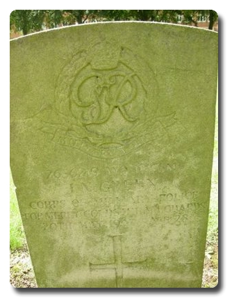 | Notes: | CMP. 27/11/1933 enlisted in the Coldstream Guards at Grimsby in the Regular Army for 4/8 years, age 18.10 years, occupation messenger, born New Cree Grimsby. 3/1/40 compulsory transfer to CMP. 81 Coy (TC). 20/5/43 Died He was born and resided in Grimsby. Died in a motorcycle accident at Ollerton, Nr Newark. Casualty List 1148/31, Home, died as a result of an accident, 20/5/1943. 7/9/49 He was awarded the GSM 1918 Palestine, Defence Medal, War Medal, GSM 1918, Palestine. Address:- Mrs S E Green, 154 Eastfield Side, Sutton in Ashfield, Notts. Inscription on gravestone:- I heavenly love abiding. John Neal Green. |
