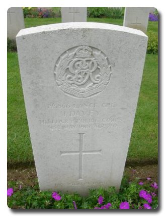 | Notes: | MMP. Awarded the Victory and War Medals. First served abroad (1) France, 3/1/18 to 31/5/18. He was born In Mynyddislwyn, enlisted in Cardiff and resided in Trelaw. Died of Wounds. Formerly served in the Welsh Horse. No. 1177 and 2/1 Bedfordshire Yeomanry. No. 2600. Inscription on gravestone: Thy will be done. He enlisted at Cardiff 28/4/15 in the Welsh Horse. No. 1177 age 37.1 years, home address 101 Miskin Road Trealan, Rhondda. 25/9/16 transferred to the Bedfordshire Yeomanry. No. 2600, then MMP 30/1/17. He had formerly served in the 3 South Wales Borderers Regiment (TF). Served Home 28/4/15 to 2/1/18, France 3/1/18 to 11/5/18. Received gun shot wound to abdomen and died. His widow received the following property: photograph, letters & papers, note book, pencil, pocket book, 5 coins, pipe, mirror (broken), 12 brooches, 6 badges. She received a pension of 42 shillings one pence for her and six children. Info from Pension Index Cards: MPW1. 5/W/3127, 5/APW/1369, christian name Mrs, Elizabeth, 101 Miskin Road, Rhondda, Glamorgan, man's name, Davey, Jake (Jenhol), MMP, A/L/Cpl, P/6566. Also:- SB36-W. WIDOWS. 5/W/3127. Widow, Davey, Elizabeth, 101 Miskin Road, Trealaw, Rhondda, christian name of husband Jake (Jenhol), MMP, P/6566, A/L/Cpl, DIED 31/5/19, 6/1/19 widow awarded 13/8 + 28/4 child allowance, 42/1 per week. Also:- 60 Darcy, Elizabeth, 101 Miskin Road, Rhondda, Glamorgan, P/6566, Darcy, Jame, MMP. Also:- W1. 5/W/3127. Region 5, 26/5/24, APW, 29/9/20, Darcy, Jake P/6566, MMP, L/Cpl, 31/5/18 Died of Wounds, Widow, Elizabeth, 101 Miskin Road, Rhondda, Glamorgan, born 7/7/82. 16/7/18 she received a grant of £11. Children: Henry J, born 30/1/04, Albert B, born 22/5/05, William L, born 26307, Martha, born 8/11/08, Abe, born 9/4/11, David S, born 20/2/15. 6/1/19 widow received a pension of 42/1 per week. His name is spelt Davey on CWGC and medal index card and Darcy on Pension Index Cards. Jake Davey |