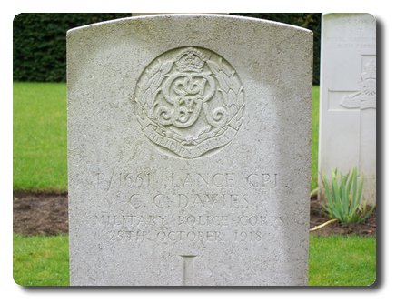 | Notes: | MMP. Awarded the 1915 Star, Victory and War Medals. First served abroad (1) France,3/9/1915 to 25/10/1918. He was born in Cheltenham, enlisted in Worcester and resided in Peterchurch. Died of illness, 10 Casualty Clearing Station, RAMC, Army Register of Soldiers' Effects, 1901-1929. No inscription on gravestone. Home address: The Bungalow, Gloucester Road, Gloucester. Cyril Charles Davies. |
