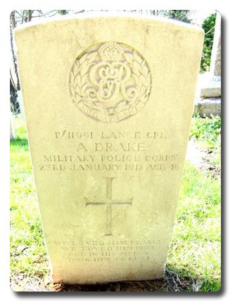 | Notes: | MFP. Awarded the 1915 Star, Victory and War Medals. First served abroad (1) France, 23/6/1915 to 19/1/1916. Formerly Pte. 5 Ox & Bucks Light Infantry. No. 9577. He was born and enlisted in Doncaster and resided in Adwick. Info from Army Register of Soldiers' Effects 1901-1929. Died at Military Hospital, Falmouth, 25/5/1918 widow Kathleen received £8-04-02 and child, 29/11/1919 she received £8 war gratuity and 22/4/1920 a further £7 war gratuity. Info from Pension Index Card: Alfred Drake, No. P/11991, L/Cpl. MFP, 23/1/1918 died from bronchitis, wife Kathleen Drake, 1 St Lawrence Terrace, Ardwick le Street, Doncaster, Yorkshire. 4/2/1918 grant of £5, Children Alfred born 21/2/1903, date of expiry 21/2/1919, Mable, born 17/9/1904, expiry date 17/9/1920, Ellen, born 14/9/1906, expiry date 14/2/1922, Alice born 5/3/1908, expiry date 5/3/1924, Violet, born 23/1/1914, expiry date 23/1/1930. 5/8/1918 pension of 37/11 d per week. Alfred Drake. |