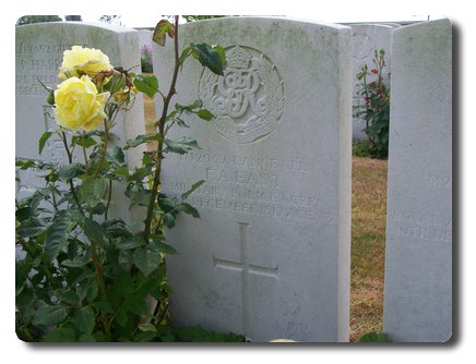 | Notes: | MMP. Awarded the Victory and War Medals. First served abroad (1) France, 5/4/1916 to 11/12/1917. Formerly Pte. 2 County of London Yeomanry. No. 2226. He was born in Camberwell, enlisted in Westminster and resided at Catford. Died of wounds, 64 Casualty Clearing Station, Army Register of Soldiers' Effects, 1901-1929. Inscription on gravestone: In loving memory of our dear Arch even unto death. Info from Pension Index Cards:- East, Mrs, Elizabeth, 9 Beechfield Road, Catford, London SE. 11/PP/31176, P/12957 L/cpl Francis Archibald East, MMP. Also:- DEPENDANT'S PENSION. D1. File passed to Region II, London 15/7/21. DFJ.14, 11/PP/31176. East, Francis Archibald, P/12957, MMP. L/Cpl, 11/12/17 Died from wounds received in action, dependant: Mrs Elizabeth East, 9 Beechfield Road, Catford, London SE. relationship Mother pension 15/- from 18/6/18 for life. Also:- SB36D. 11/PP/31176. East, Francis, Archibald, MMP, P/12957, L/Cpl, 11/12/17 DOW, serving, Claimant: East, Mrs Elizabeth, 5 Beechfield Road, Catford, London SE, relationship Mother, age 66 years. Info from Army Register of Soldiers' Effects 1901-1929. 601221, e539152. East, Francis Archibald, MMP. L/Cpl, Died 11/12/17, 64 CCS, France, 4/3/18 his mother Elizabeth received £2-14-05, sister Grace E £2-14-05, sister Mary N £2-14-05, sister Beatrice L £2/14/05, 23/11/19 mother Elizabeth received £15 war gratuity. Francis Archibald East. Frank Archibald East. |