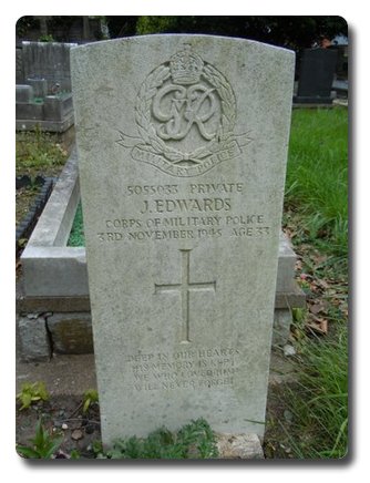 | Notes: | CMP. Enlisted in the North Staffordshire Regiment, transferred to CMP. VP. 3/11/45 Died. No Casualty List found. He resided in Willenhall. Medal card not found. Inscription on gravestone: Deep in our hearts his memory is kept, we who love him will never forget. He is not listed in Crozier Roll or Army Roll of Honour. Jack Edwards. |