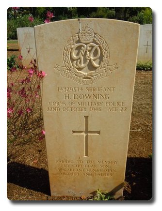 | Notes: | CMP. Enlisted in the General Service Corps, the Royal Artillery (Field) then CMP SIB. 22/10/46 Died. 6/11/48 He was awarded the 1939-1945 Star, Italy Star, War Medal. note Killed in Greece. Address:- Not shown Casualty List not found. Inscription on gravestone: Sacred to the memory of our dear son, a gallant gentleman, Mother and Father. Harry Downing. |
