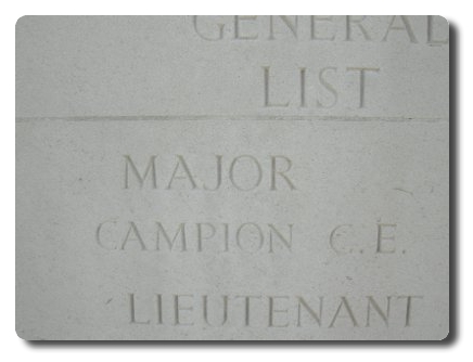 | Notes: | Provost Officer. He was born in London and resided in Surrey. London Gazette 34823, page 1981, 5/4/40. General List. The undermentioned to be 2/Lt's. 12/2/40 Clarence Edgar Campion (120286). London Gazette 35415, page 224, 13/1/42. General List. the undermentioned to be Lt's. 12/2/40 and not as notified in Gazettes (Supplements dated as follows: 5/4/40 Clarence Edgar Campion (120286). Since deceased. He was wounded in the head during an enemy air raid on the rear HQ Boulogne on the 19/5/40 and died of wounds the following day. He commanded the first detachment of SIB to be posted to the BEF 29/2/40. See Crozier RMP history pages 32, 170, 171 & 172. 20/5/1940 Casualty List (Officers) 241, BEF, France, Died of Wounds. Previously shown on Casualty List 221 as wounded. He was awarded the 1939-1945 Star, War Medal. Address:- Not shown. Clarence Edgar Campion. |