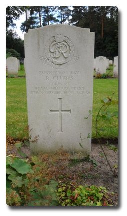 | Notes: | CMP. Died 12/11/1949. Enlisted in the Gordon Highlanders. 2/2/41 Transferred to CMP. 12/11/49 Died, Cause of death unknown. Age 39. Captured - 12th June - Escaped - 20th June 1940 Left Gibraltar - 19/10/40, Arrived GLASGOW 28.10.40. Home Address: Holly Bungalow, Sherborne Road, South Farnborough, Hampshire, Previous Service: Reservist 9 years. Peacetime Profession: Clerk. Grave Reference: Post War Plot Row E Grave 20. Born 9/9/1910. Robert Clubbs. |