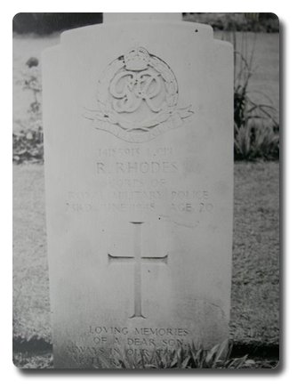 Notes: | RMP. Died 23/6/1948. Cause of death unknown, Germany. Age 21. Grave Reference: Plot V Row D Grave 6. The following information was received from L/Cpl Rhodes relatives via RMP museum. He enlisted in the Royal Horse Artillery, 6/5/46 and transferred to RMP 18/11/46. 26/1/47 posted to 246 Pro Coy (Berlin), 6/2/48 posted to 192 Pro Coy (Hamburg), 12/4/48 posted to 2 Div Pro Coy. He died in a traffic accident whilst escort to the GOC 2 Division, age 20 years. Funeral attended by members of 87 Section, SIB and the Chief Mourners were Capt Price and L/Cpl Telher. Born 10/6/1928. Ronald Rhodes. |