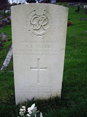 | Notes: | CMP. VP. Enlisted in the Queens Royal Regiment. 26/7/41 Transferred to CMP. 18/12/44 Died. He was born in Kent and resided in Surrey. Casualty List 1644/14, Home, Died, 18/12/1944. 5/10/49 He was awarded the 1939-1945 Star, Defence Medal, War Medal. Address:- 20 Colesmead Road, Redhill, Surrey. Inscription on gravestone: In loving memory of my dear husband, gone but not forgotten. He is listed in the GPO War Memorial Book, Reigate and Redhill Area. Alfred Edward Clarke. |