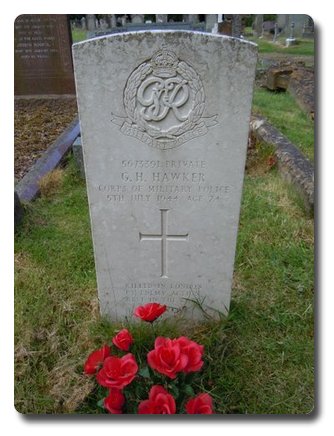 | Notes: | CMP. He was born and resided in Somerset and Formerly served in the Somerset Light Infantry transferred to CMP. Casualty List, 1508/45, Died of Wounds, Home, 5/7/1944. 5/9/49 He was awarded the Defence Medal, War Medal. Address:- 33 Hermitage Street, Crewkerne, Somerset. Inscription on gravestone:- Killed in London by enemy action,m rest in the Lord. George Henry Hawker. Extract from the Western Daily Press - 15 July 1944. Young Home Guards last tribute, to Crewkerne soldier's funeral, Home Guard formed a guard of honour and provided the bearer party at the funeral of L/cl George H Hawker (37) CMP, the son of Mr & Mrs L H Hawker, Hermitage Street who was killed by enemy action in this country. L/Cpl Hawker was mobilised with the Crewkerne Territorials at the outbreak of war and after serving two years with the somerset was transferred to the Military Police. He was employed as an ironmongers assistant, Crewkerne. The vicar (Preb. Norris) conducted the service at Crewkerne Church which proceeded the internment at the cemetery. The coffin was draped with the union jack and following the last rites at the grave the "The Last Post" was sounded by Sergt. Major Abbot (Home Guard). Besides the family mourners there were many friends present and the floral tributes were numerous . |