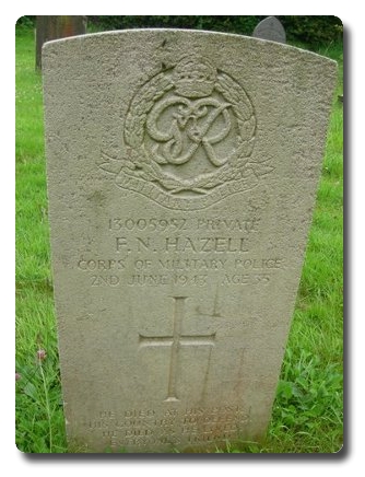 | Notes: | CMP. Enlisted in the Auxiliary Military Pioneer Corps, transferred to CMP. VP. 2/6/43 Died. He was born and resided in Great Yarmouth. Named Hayward in Army Roll of Honour but with same name and date of death. Casualty List 1214/17, Home, Died, 2/6/1943. 28/2/50 He was awarded the 1939-1945 Star, Defence Medal, War Medal. Address:- Mrs L V Smith, 19 North Quay, Great Yarmouth, Norfolk. Inscription on gravestone: He died at his post his country to defend, he died as he lived everyone's friend. Frederick Nelson Hazell. |