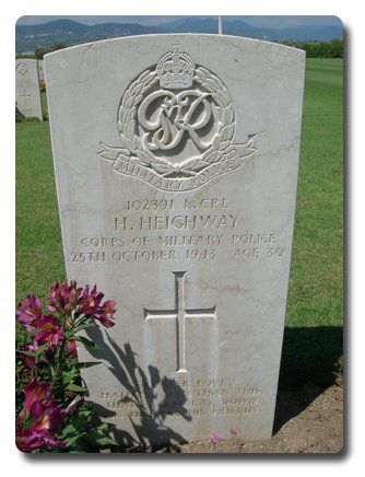 | Notes: | CMP. 111 Pro Coy. 15/9/39 enlisted in the Royal Army Service Corps, later Auxiliary Military Pioneer Corps. 1/2/41 transferred to CMP. 25/10/43 Died. He was born in Gateshead and resided in Newcastle upon Tyne. War Diary 111 Pro Coy, WO 169/13254. 24/10/1943 normal routine duties. One L/Cpl admitted to hospital due to motorcycle accident which proved fatal. Casualty List 1287/4, North Africa, Died, 25/10/43. Casualty List 1301/16, corrections, List 1287, North Africa, Died should read Died Result of Accident, 25/10/1943. 7/9/49 He was awarded the 1939-1945 Star, Africa Star, Defence Medal, War Medal. Address:- Not shown. Inscription on gravestone: Greater love hath no man than this that a man lay down his life for his friends. Henry Highway. |