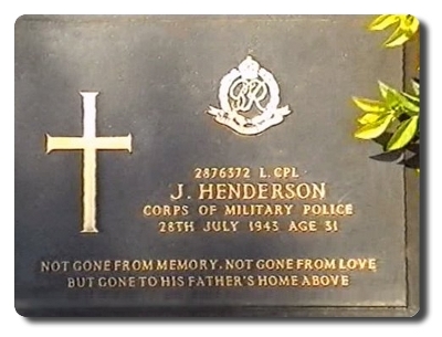 | Notes: | CMP. POW. Singapore Fortress Pro Coy. Enlisted in the Gordon Highlanders, transferred to CMP. 28/7/43 Died. He was born and resided in Aberdeen. Captured Singapore 15/2/42. Shown as died up country and died Siam in Cutts papers. Inscription on grave panel: Not gone from memory, not gone from love, but gone to his father's home above. Info from Japanese POW index cards: Jonathan Henderson, born 7/9/1911 at Cournoaird, Ryynnie, Scotland, address: mother Margaret Henderson, Hilchend, Clatt, Kennethmont, Aberdeenshire, occupation farm labourer, father Alexander, mother Margaret. He is listed on British POW's held in Japan and Japanese Occupied Territory: 23435, Henderson, Jonathan, L/cpl, 2876372, captured 15/2/1942, died 28/7/1943, camp TH, Thailand. He is listed on Roll of POW Camps, Thailand: Henderson, Jonathan, Army, L/Cpl, new POW No. I 8414, old POW No. I1300, previous camp M-2599, 2876372, M-18/7/28, Deceased? He is listed on List JH 256, British POW who died of illness in the Thailand Camp: 12, L/Cpl, Jonathan Henderson, 2876372, 28/7/1942, Beri Beri, Inhumed. Casualty List 772/24, Malaya, Missing, 15/2/1942. Casualty List 1280/3, Malaya, previously reported missing now POW, previous list 772, 15/2/1942. Casualty List 1283/21, previous List 1280 , Malaya, previously reported missing now POW, previous List 772, 15/2/1942. Casualty List 1844/32, POW, previously reported POW now reported Died, 28/7/1943, previous List 1280 corrected by List 1283, Malaya. Medal card not found. Jonathan Henderson. Extract from the Aberdeen Press & Journal, 24/8/45 . More than two years afterwards Mr and Mrs A Henderson, Hillhead, Cialt, have received news that their son, Cpl J Henderson, Corps of Military Police had died in a Japanese prisoner of war camp. He was captured in 1942 and died from beri-beri in Thailand on July 28, 1943. Cpl Henderson who was a farm servant in the Cialt district was in the Gordon Highlanders before transferring to the Corps of Military Police. |