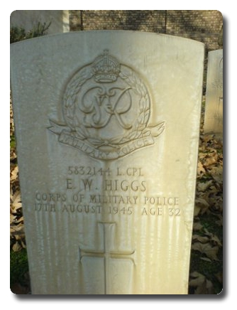 | Notes: | CMP. 1 Base Pro Coy. 13/6/40 enlisted in the Suffolk Regiment, 25/1/41 transferred to CMP. 17/8/45 Died. He was born in London SW and resided in Suffolk. Died. Casualty List 1841, India, Died, 17/8/45. Eric William Higgs. |