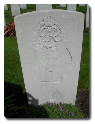 | Notes: | CMP. 11/9/43 Died. Enlisted General Service Corps, transferred to CMP. Born He was born in Somerset and resided in Middlesex. Casualty List 1252/11, Home, Died, 11/9/1943. 20/9/49 He was awarded the War Medal. Address:- Mrs S K Jay, 313 Stm Margarets Road, East Twickenham, Middlesex. Inscription on gravestone: In the midst of life we are in death. John Hector Jay. |