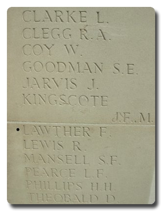 | Notes: | CMP. Formerly Royal Army Medical Corps, transferred to CMP. 29/5/40 died. He was born and resided in Grimsby. His No. shown as 4260404 in Army Roll of Honour. Casualty List 336,/3 BEF, France, Missing. Casualty List 821/1, BEF, France, presumed killed in action shown on list 336 as missing, date not reported, rank L/Cpl. 2 9/5/1940 Died. Medal card not found. Frank Lawther. |