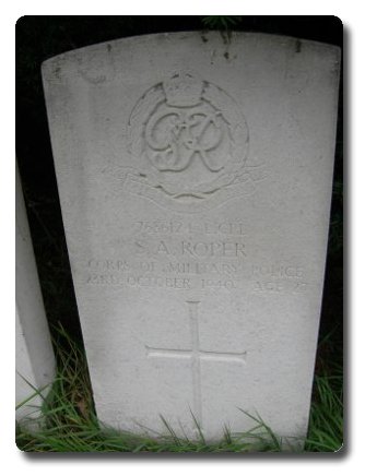 | Notes: | CMP. Enlisted in to CMP. He was born and resided in Edgbaston, Birmingham. No inscription on gravestone. Casualry List 350/11, died as a result of accident (L370- acc killed - P.115). Casualty List 357/8 Home, died as a result of an accident, (CL 370 deleted) 23/10/1940, No shown as 6786124 in this entry. Casualty List 370/13, Corrections, List 350, Home, died as a result of an accident 23/10/40. Medal card not found. Stanley Arthur Roper. |