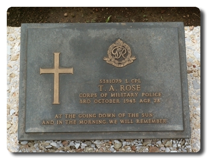 | Notes: | CMP. POW. 18 Div Pro Coy. Enlisted in the Ox & Bucks Light Infantry, transferred to CMP. 15/2/1942 captured Singapore. 3/10/43 Died. He was born in Worcestershire and resided in Worcester. Died of Diarrhoea, 01.00hrs 3/10/1943 at Kami Sonkrai, Thailand. Home address Mrs R Rose, 7 New Street, Childs Wickham, Nr. Broadway. Worcestershire. Info from Japanese POW index card: Thomas Albert Rose, 5/4/1914 born Childswickham, Worcester, address: Mrs Rose Rose, 7 New Street, Childswickham, Nr Broadway, Worcester, father Frederick, mother Susan. He is listed on British POW's held in Japan and Japanese Occupied Territory: 43430, Rose, Thomas A, L/Cpl, 5381079, Army, captured 15/2/1942, died 3/10/1943, camp MA, Malaya. He is listed in Malaya POW Camp Roll: Rose, Thomas, A, L/Cpl, new POW No.IV 9274, old POW No. i/5444, 5381079, 3/10/16. He is listed on British POW who died of illness in the Malaya Camp: 3. L/Cpl, Thomas Rose, 5281079, died 3/10/1943 from colitis he was cremated. Casualty List 792/9, Malaya, Missing, 15/2/1942. Casualty List 1155/13, Malaya, previously posted missing now reported POW, previous List 792, 15/2/1942. Casualty List 1911/18, previously reported POW now reported Died, 3/10/1943, previous List 1155, Malaya. 7/9/49 He was awarded the 1939-1945 Star, Pacific Star, War Medal. Address:- Not shown. Thomas Albert Rose. |