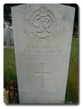 | Notes: | CMP. Formerly Royal Artillery (field, coast & AA), 19/10/1935 to Army Reserve, 11/12/1939 transferred to CMP. 11/4/41 Died. He was born and resided in Liverpool. Inscription on gravestone: Resting where no shadows fall. Casualty List 494/3, Home, Died as a result of an accident, 11/4/1941. Medal card not found. Thomas Smallwood. Extract from the Liverpool Evening Express, 21/4/1941. Roll of Honour. Lance Corporal Thomas Edward Smallwood, age 26, Military Police of 4 Stapleton Avenue, Warrington, died from injuries received in an accident. (article has small photograph of Smallwood.) |