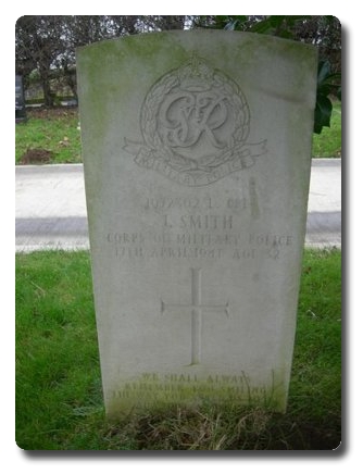 | Notes: | CMP. Enlisted in the Royal Artillery (Field, Coast & AA),transferred to CMP. 17/4/41 Died as a result of an accident. He was born in Yorkshire and resided in Sheffield. Casualty List 498/4, Home, died as result of accident, 17/4/1941. 7/9/49 He was awarded the Defence Medal, War Medal. Address:- "Roseville", Hollings Lane, Ravenfield, Nr. Rotherham, Yorks. Inscription on gravestone: We shall always remember you, smiling the way you asked us to do. Ada, Dot and Edith. Joseph Smith. |