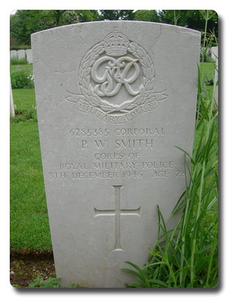 | Notes: | CMP/RMP. Enlisted the the Buffs, East Kent Regiment, transferred to CMP. 8/12/46 Died. He was born and resided in Kent. No inscription on gravestone. Patrick William Smith. |