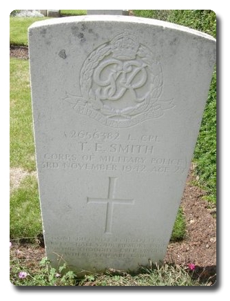 | Notes: | CMP. 5/3/1934 he enlisted in the Coldstream Guards at Wolverhampton in the Regular Army for 4/8 years, occupation furnace man, born Wolverhampton, 7/9/1939 mobilised and transferred to CMP. Casualty List 989/33, Home, Died result of accident, 3/11/1942. Medal card not found. He was born and resided in Wolverhampton. Inscription on gravestone: Gone but not forgotten, never shall your memory fade, living thoughts linger where you are laid. Thomas Edward Smith. |