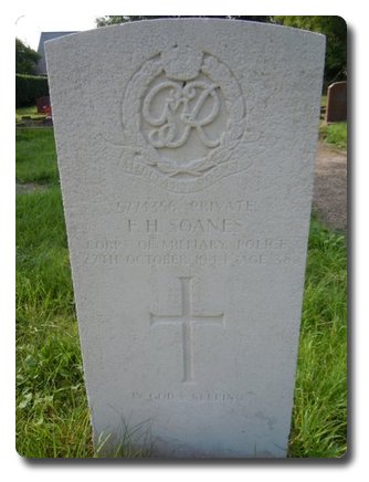 | Notes: | CMP. He was born and resided in Suffolk and formerly served in the South Staffordshire Regiment, transferred to CMP. VP.. Casualty List 1604/29, Home, Died, 27/10/44. 26/7/48 He was awarded the Defence Medal, War Medal. Address:- not shown. Inscription on gravestone: In God's keeping. Francis Horace Soanes. |