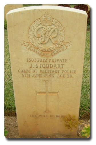 | Notes: | CMP. He was born and resided in West Hartlepool and formerly served in the Pioneer Corps. 103 Company TC War Diary WO 175/1230. 5/6/1943 Pte Stoddart J knocked down and killed by an american vehicle at road check, buried at Borge on Tunis Carthage road. Casualty List 1168,/9 North Africa, Died Result of Accident, 5/6/1943. Medal card not found. Inscription on gravestone: Thy will be done. Joseph Stoddart. |