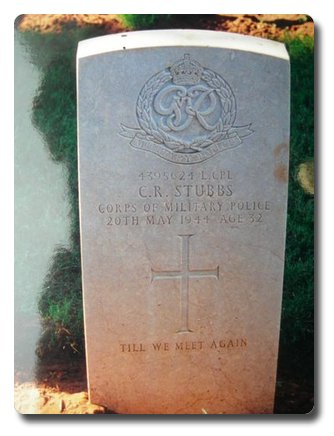 | Notes: | CMP. 24/6/40 enlisted in the Green Howards, 25/1/41 transferred to CMP. 20/5/44 Died. He was born in Durham County and resided in Northumberland. Casualty List 1465/1, Middle East, Died as a result of an accident, 20/5/1944. Casualty List 1496/32, Middle East, corrections, previous List 1465, Died Result of Accident, rank should read U/L/Cpl. Medal card not found. Cecil Rhodes Stubbs. |