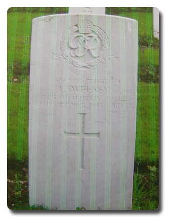 | Notes: | CMP. He enlisted in the Loyal Regiment, transferred to CMP. 10Coy TC. 30/10/45 Died. He was born and resided in Lancashire. War Diary, Pro Branch, HQ 2 District. WO 170/677. 1/11/45 Civilian bridge at Piacenza washed away, Pte J Sweeney, 10 Coy TC lost in river whilst on duty. War Diary Pro Branch, 59 Area, WO 170/4547, 1/11/45, Pte. in 10 (TC) Coy drowned when bridge collapsed. Casualty List 1911/2, Italy, previously reported Missing 30/11/1944 now reported Killed in Action, 30/10/1945. Casualty List 1974/3, previously reported Missing 30/10/1945 now presumed Died, Died Result of Accident, previous List 1911, 30/10/1945. Medal card not found. No inscription on gravestone. James Sweeney. |