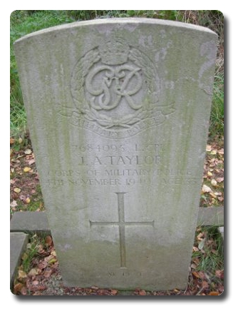 | Notes: | CMP. He was born and resided in York and enlisted in to CMP. Inscription on gravestone: At Rest a CWGC stone in a family plot. Casualty List 357/9, Home, Died, 4/11/40. No. 6784095. Casualty List 576/19, List 357, Home, Died, No. should read 7684095 20/9/49 He was awarded the 1939 - 1945 Star, War Medal. Address:- 7 West View, Wyndham Street, Hull, East Yorks. Joseph Arthur Taylor. |