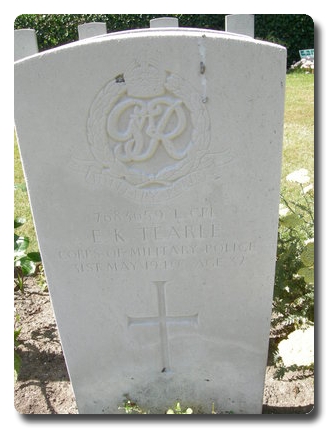 | Notes: | CMP. He was born in Essex and resided in London and enlisted in to CMP. Casualty Lists 234/7, BEF France, Killed in Action 31/5/1940. Casualty List 247/26, BEF, France, 7683659 should read 7683639, Tearle T, correct No. 7683659, Tearle E EK Casualty List 577/16, corrections, List 247 corrected by List 234, BEF, France, Killed in Action. Medal card not found. No inscription on gravestone. Edward Kifford Tearle. |