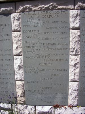 | Notes: | MFP. Awarded the 1915 Star, Victory and War Medals. First served abroad (1) 31/8/1915 to 28/9/1915 and 20/4/1916 to 30/6/1916. He was born in Caterham, enlisted in Guildford and resided in Wandsworth. Drowned at Sea. Info from Army Register of Soldiers Effects 1901-1929. Drowned as sea on the RMS Leinster. 12/6/1919 widow Ethel received £23-10-00 war gratuity. Formerly Pte. 8 Queen's Regt. No. G/2359. He was drowned at sea when the Royal Mail Ship Leinster bound for Holyhead from Kingstown with 680 passenger was sunk by the German U boat U 123. It sank in eight minutes with the loss of 501 lives. Transferred to MMP (shown as MFP on medal card) 30/3/17 from the 8 Yeomanry Cyclist Brigade and served in the 3 Cyclist Brigade. (Info from Corps Order Books). Info from Pension Index Card:- Hewitt, Arthur Algernon No. P/8940, MFP, L/Cpl. 10/10/1918 presumed drowned in loss of SS Leinster through enemy action. Widow Ethel A, born 1/12/1893, 130 St Johns Hill, Wandsworth, London SW 11. 4/3/1919 she received a £5 grant and 26/5/1919 13/9 pension per week. Arthur Hewitt. |