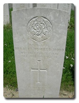 | Notes: | MFP. Awarded the Victory and War Medals. First served abroad (1) France, 7/11/1917 to 3/7/1918. Formerly Pte. Essex Regt. No. 6551.He was born in Plaistow, enlisted in Mill Hill and resided in Tottenham. Info from Army Register of Soldiers' Effects 1901-1929. Died of illness, Genoa, 14/10/1918 his widow Alice received £3-01-06, 19/11/1919 a further £6--2-09 13/10/1919 £7-10-00 war gratuity. Inscription on gravestone: Death divided memory clings. Info from pension index cards:- Hodd, Herbert Edward, No. P/9751, L/Cpl, MFP, 3/7/1918 died from gangrenous appendicitis, widow Alice Maud Hodd, 21 Phillips Lane, Tottenham, London, son Robert born 30/12/1915 date of expiry 20/12/1931, 18/7/1918 grant of £6, 6/1/1919 received a weekly pension of 36/8. Address also: 70 St. Agnes Place London SE 11. and Basement Flat, 15 Goldsmid Road, Hove, Brighton. Herbert Edward Hodd. |