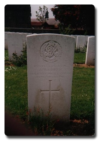 | Notes: | MMP. Awarded the Victory and War Medals. First served abroad (1) France 20/3/1917 to 15/8/1918. 6/11/1914 he enlisted as a Pte. Northumberland Hussar. No. 1372 shown as No. 270548 on medal card. He was born and resided in Heaton and enlisted in Newcastle upon Tyne, occupation plumber, address: Father, Victoria Villas, Heaton Hall Road, Heaton, Newcastle upon Tyne and West Cliff Mill, Ferry Bridge, Yorkshire. 23/9/1917 transferred to 1/4 Northumberland Fusiliers, 25/10/1917 transferred to MMP, attached to APM Havre, 27/3/1918 Attached APM Abbeville, 25/8/1918 Killed in Action, C160, 25/8/1916, DPM 3 Army, 26/8/1918. Ambrose Warren. |