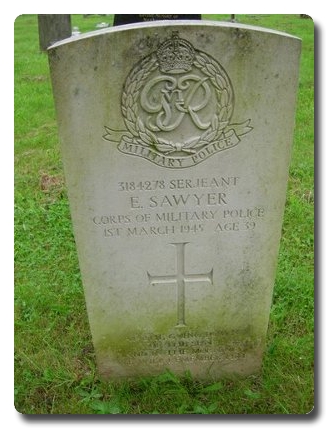 | Notes: | CMP. He was born and resided in Derby and formerly served in the South Lancashire Regiment. Casualty List 1706, Home, Died, 1/3/45. Medal card not found. Inscription on gravestone: At the going down of the sun and in the morning we will remember him. Ernest Sawyer. |