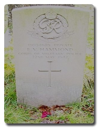 | Notes: | CMP. Enlisted in the Auxiliary Military Pioneer Corps, 21/6/41 transferred to CMP. VP. Not listed in Crozier Roll or Army Roll of Honour. Casualty List 851/5, Home, Died 22/5/1942. Medal card not found. No inscription on gravestone. He died on the dame day as Pte Fox also ex Pioneer Corps. Eric Victory Hammond. |
