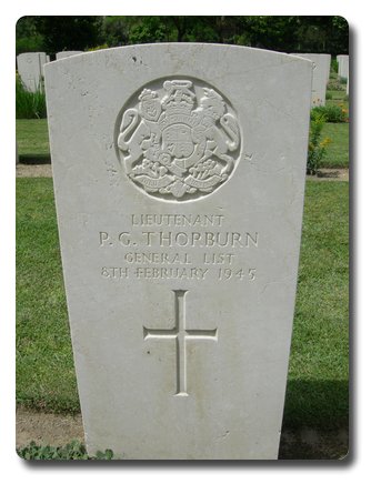 | Notes: | Provost Officer. General List. He was born and resided in Edinburgh. War Diary WO 170/7088 103 Company TC, Italy. 20/1/45 Injured in traffic accident on the Auto Strada near Pompei with L/Cpl Baker. Dangerously ill at No. 1 RAF General Hospital. 8/2/45 Lt Thorburn, died. 9/2/45 Lt Thorburn's funeral. Death also mentioned in War Diary of 111 Pro Coy, WO 170/7004. 26/6/44 to 49 Company (TC), Italy. Casualty List (Officers) 1665, Italy, Dangerously ill, 20/1 1945. Casualty List (Officers) 1681, Italy, previously reported dangerously ill, 20/1/1945, now reported died, 8/2/1945. Casualty List (Officers) 1688, Italy, previously reported dangerously ill 20/1/1945 now reported died as a result of an accident, 8/2/1945. No inscription on gravestone. Peter Thorburn. |