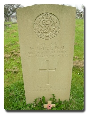 | Notes: | MFP. Not listed in soldiers died. Info from army record: 3/9/84 Enlisted in the Yorkshire Regiment No. 1142 Home address: 14 John Street, Silksworth, Sunderland. Had 6 Children. 25/6/88 tried and imprisoned by the civil power, 25/3/89 returned to duty. Served Home 3/9/84 to 4/10/85, Egypt 5/10/85 to 31/8/88, Cyprus 1/2/89 to 28/7/89, Egypt 29/7/89 to 22/9/89, Home 23/9/89 to 20/1/00, South Africa 21/1/00 to 2/7/01, Home 3/7/01 to 31/8/01 to discharge. He re enlisted in the MFP 6/10/14, born Bishop Aukland, age 48 years, occupation miner, home address: 20 Avondale Street, Dawdon Colliery, Seaham Harbour, Durham. He was discharged at Aldershot on the 12/11/14, 392 (iii) (c) KR, unlikely to become and efficient soldier. Served 38 days. His pension documents contain an award sheet, first award dated 10/4/19, this is strange if he was discharged in 1914, how did he get a Commonwealth War Grave in 1918. Inscription on gravestone: On his soul sweet Jesus have mercy. 5/9/91 Married Ann Henderson at Bishop Aukland. William Usher. |