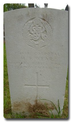 | Notes: | MFP. Served Home. Not listed in Soldiers Died. 31/1/1917 transferred to MFP for duty in Southern Command from 2 (HS) Bn. Devonshire Regiment, No. 48691, from Corps Order No. 17. Transferred to Labour Corps, No. 439867, 449 Agricultural Coy. Info from Soldier's Effects, 1901-1928: Wear, Herbert, 449 Agricultural Coy, Labour Corps, No. 439867, pay office, Nottingham, Died Congresbury, Somerset, 17/11/19 his mother Harriet received the sum of £18-03-04 including £5-15-00 war grant. NOK father Charles Wear, Stonewell Farm, Congresbury, Somerset. Note: His CWGC gravestone has the badge of the Military Police Corps but his details in Soldier's Effects shown him a Labour Corps. Herbert Francis Wear. |